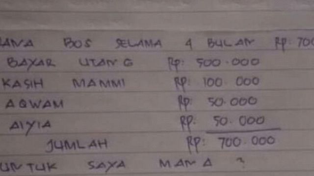 Hervina hanya satu dari sekian banyak contoh potret suram yang dialami oleh guru honorer. Rp. 700 ribu yang didapat tiada lain adalah gajinya selama 4 bulan, sudah dengan BOS (Bantuan Operasional Sekolah). Begini unggahannya,